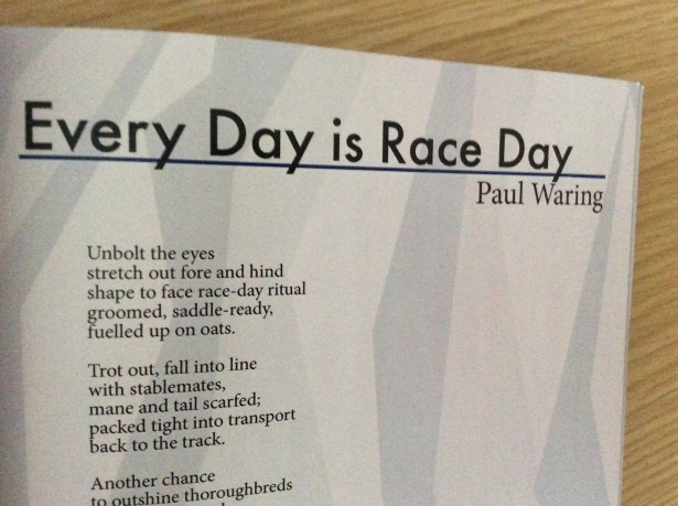 Absolutely thrilled my poem poem ‘Every Day Is Race Day’ is in the Here Comes Everyone “Rituals” issue, a wonderful collection of poems, short stories, visual art and articles. Grateful thanks to Raef Boylan, Matthew Barton and the rest of the HCE team.